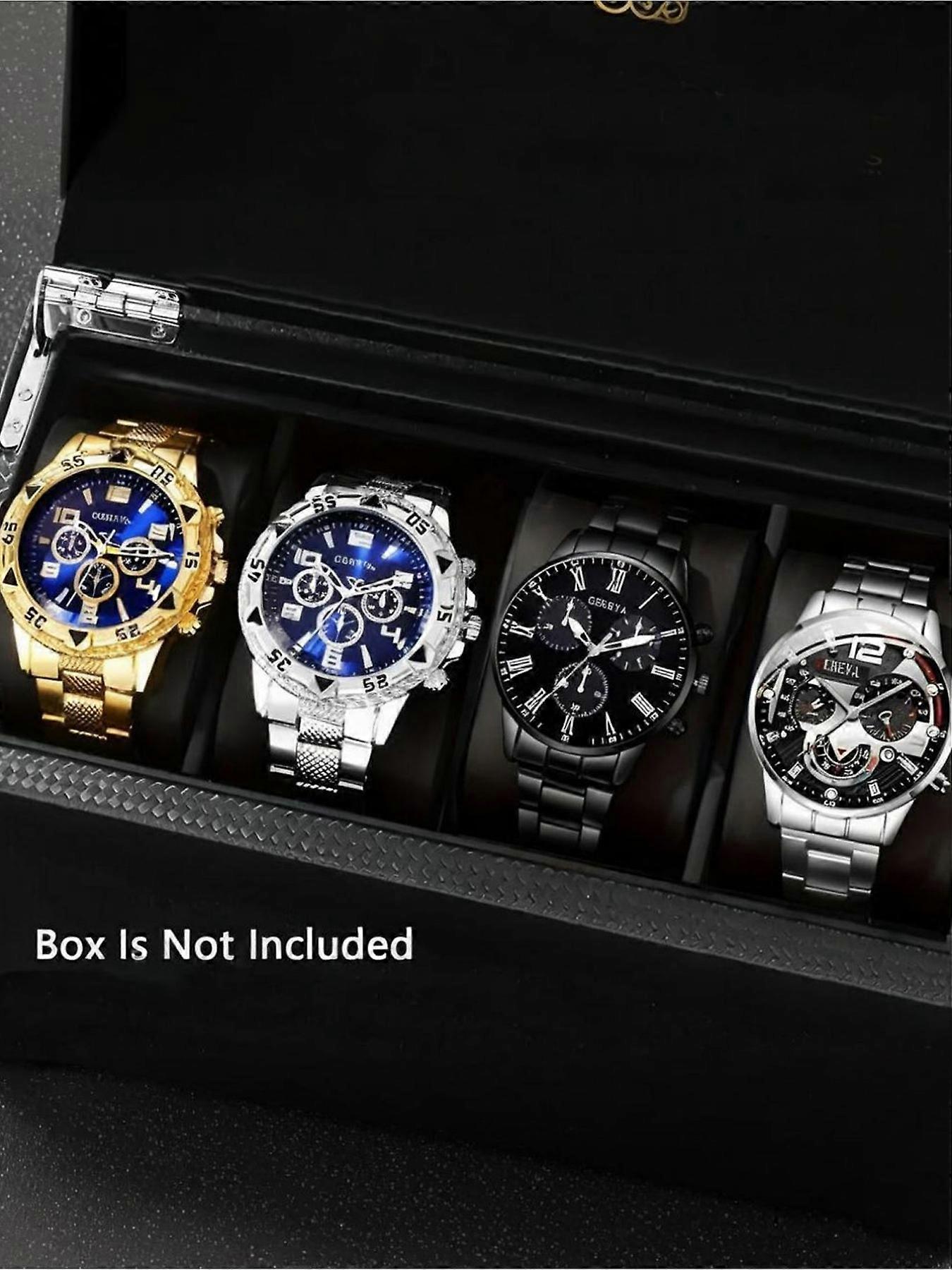 4-piece watch set, men's exquisite versatile watch, fashionable quartz watch, simple temperament watch set