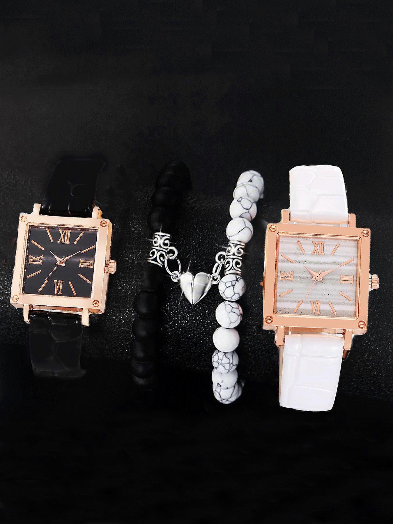 4-piece exquisite neutral steel strip watch set for women, couples, men, quartz watch set