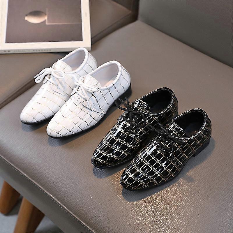 Children Spring Autumn British Style Fashion Boys Pointed Toes Solid Leather Shoes Children Soft-soled Plaid Performance Shoes