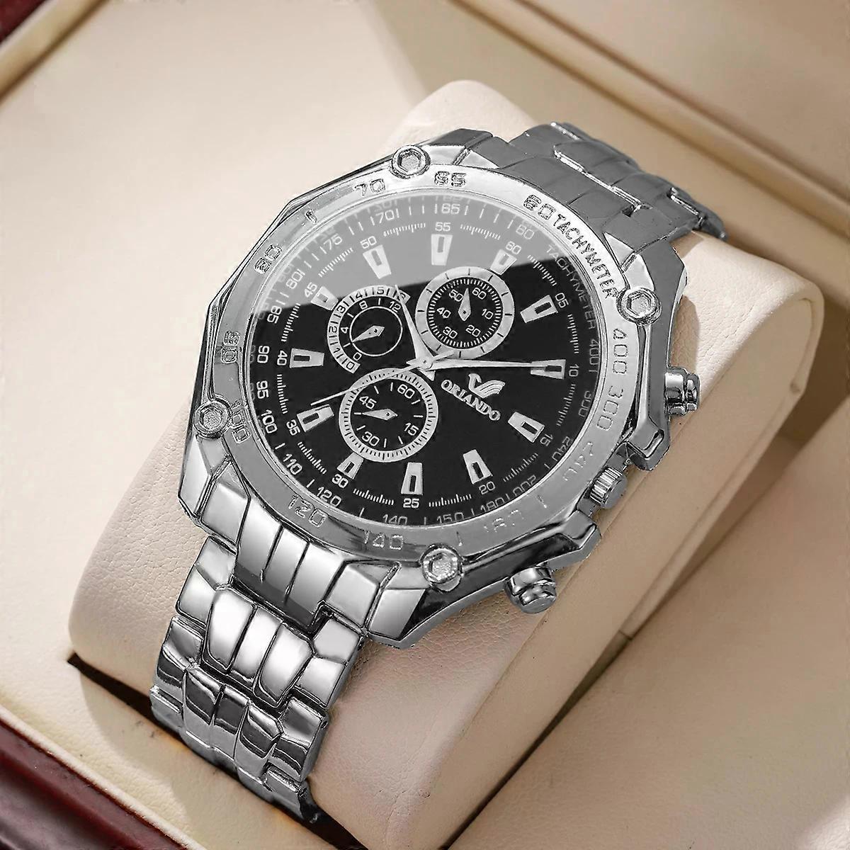 1pcs large dial men's steel strap watch, fashionable and casual men's business watch