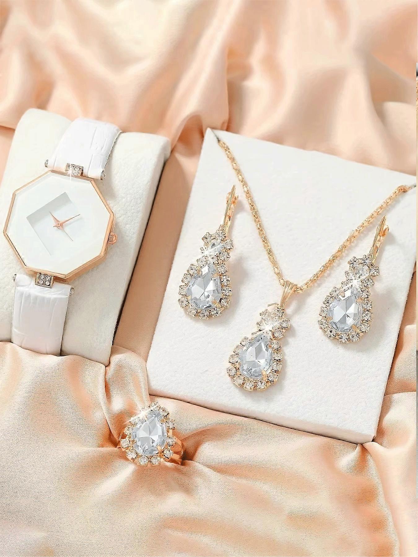 5-piece exquisite and versatile women's watch set, fashionable quartz watch, casual steel strip watch, women's watch set
