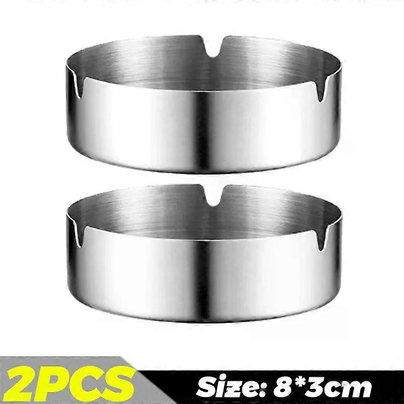 Stainless Steel Ashtray Silver Metal Cigarette Ash Storage Tray Round Thickened Ashtray Portable Tabletop Ash Tray for BarOffice