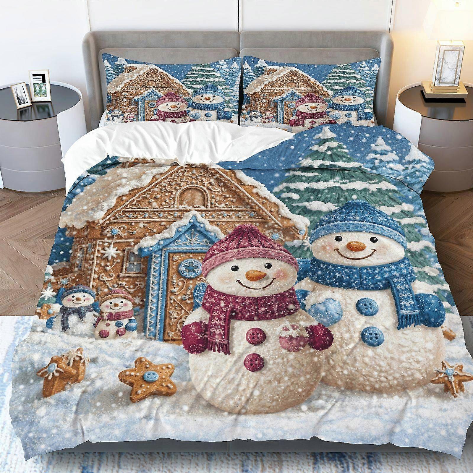 3pcs Duvet Cover Set Snowman Gingerbread Christmas Winter Theme