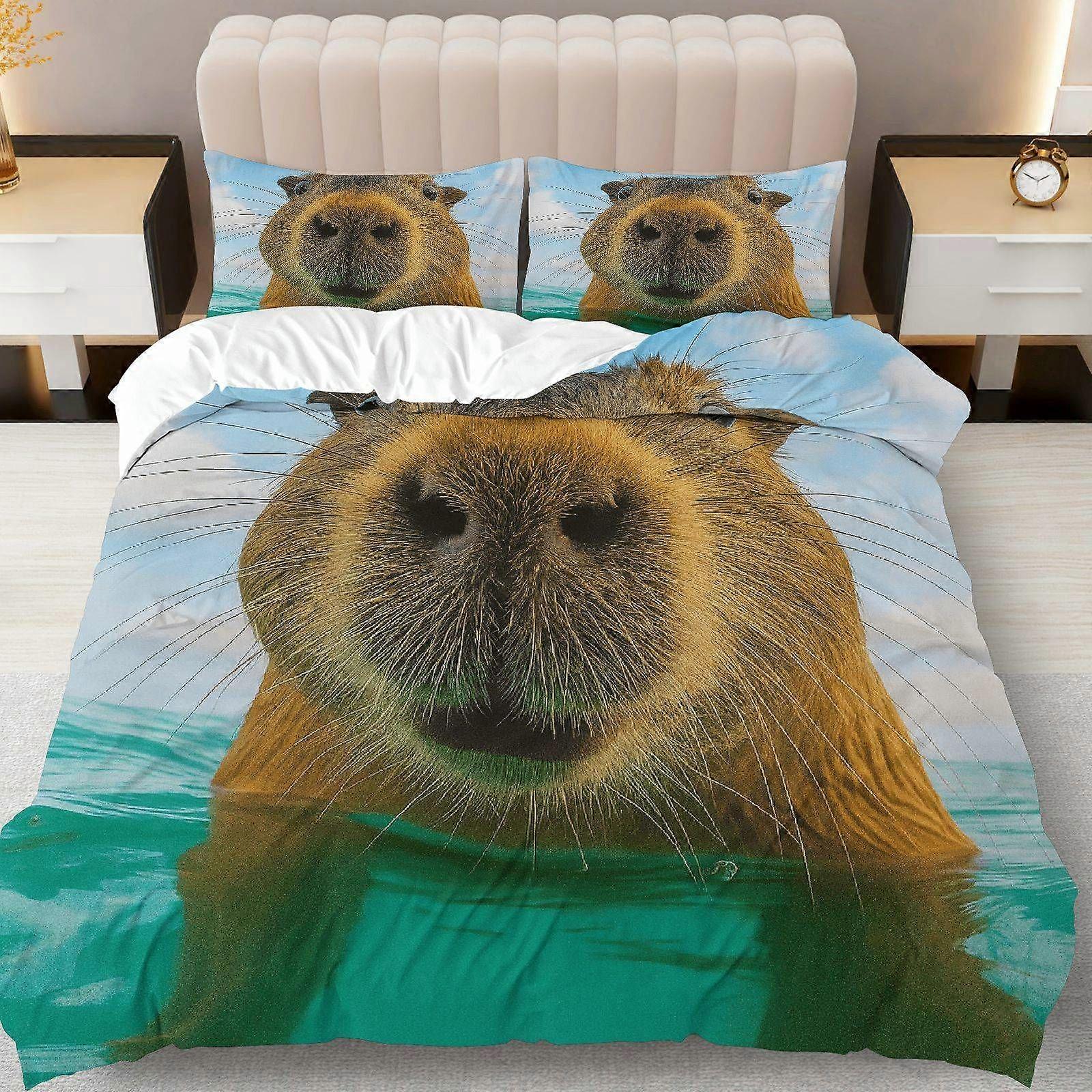 3pcs Capybara Cute Fun Animal Summer Whimsical Funny Theme Duvet Cover Set 1 Duvet + 2 Pillowcases Cozy Soft Polyester Bedding Comforter for All-seaso