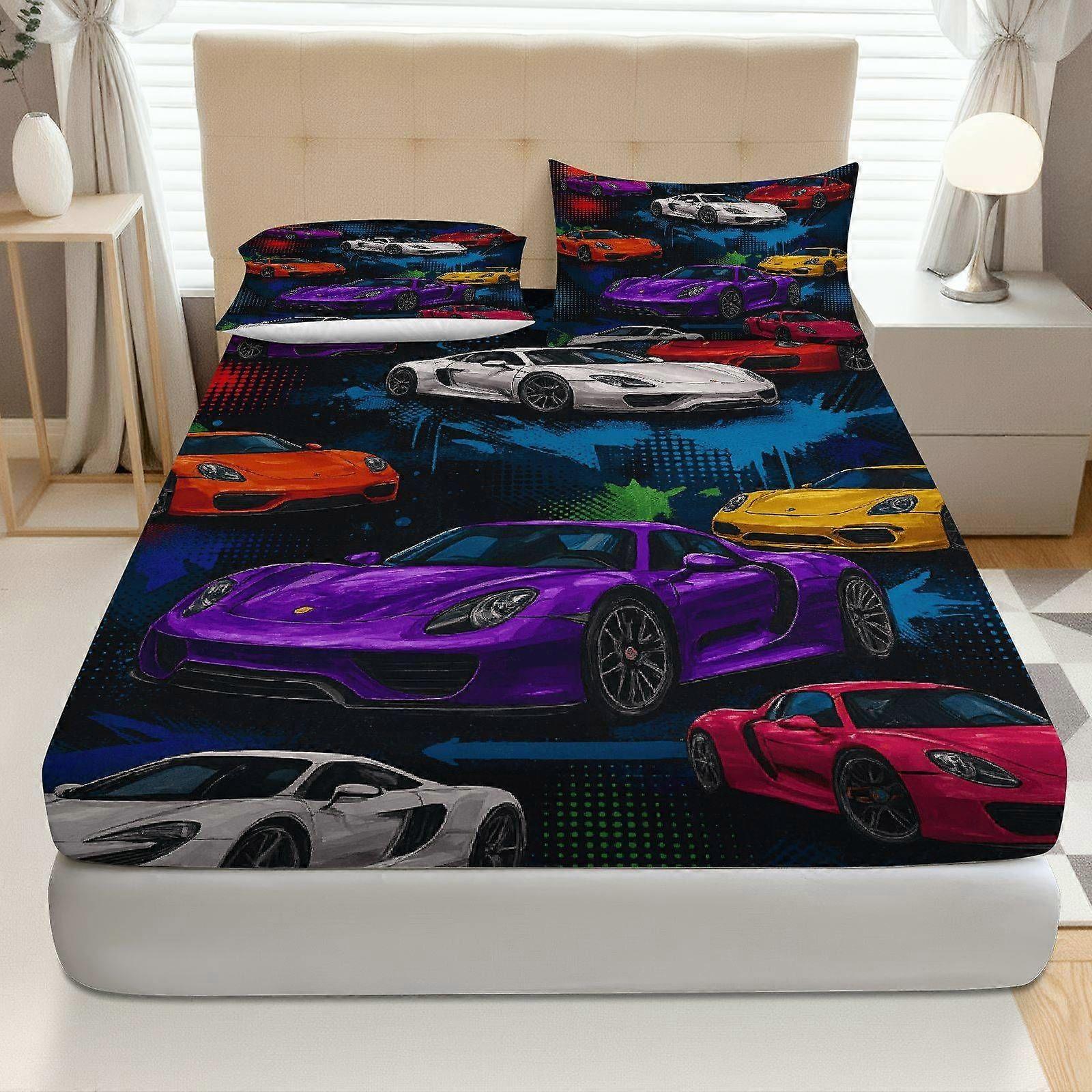 3pcs Racing Car Sports Supercar Fitted Sheet Three Piece Set