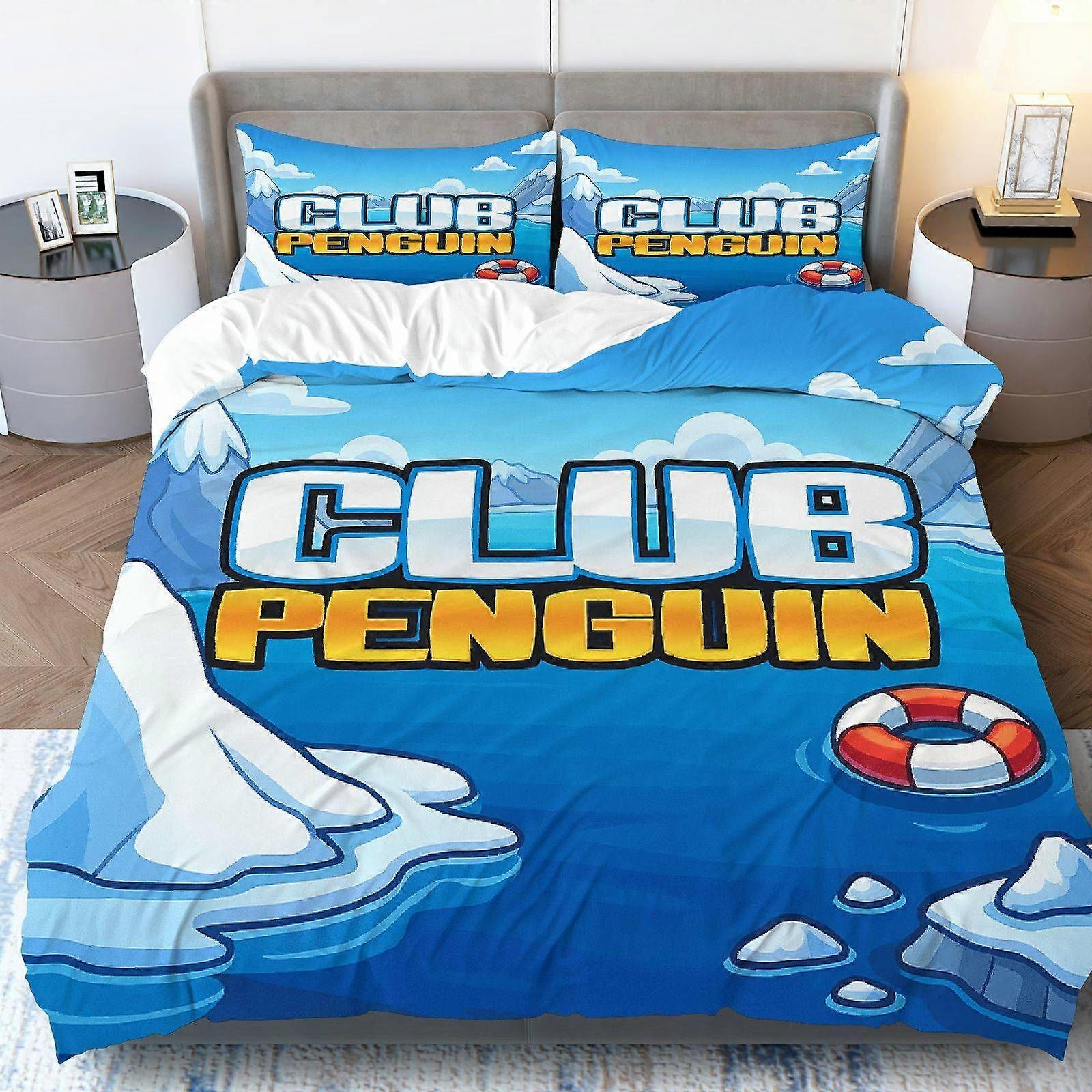 3pcs bedding Featuring a Penguin Club Ocean Adventure Theme with Icebergs And Lifebuoys Perfect for Christmas Decor in Bedrooms