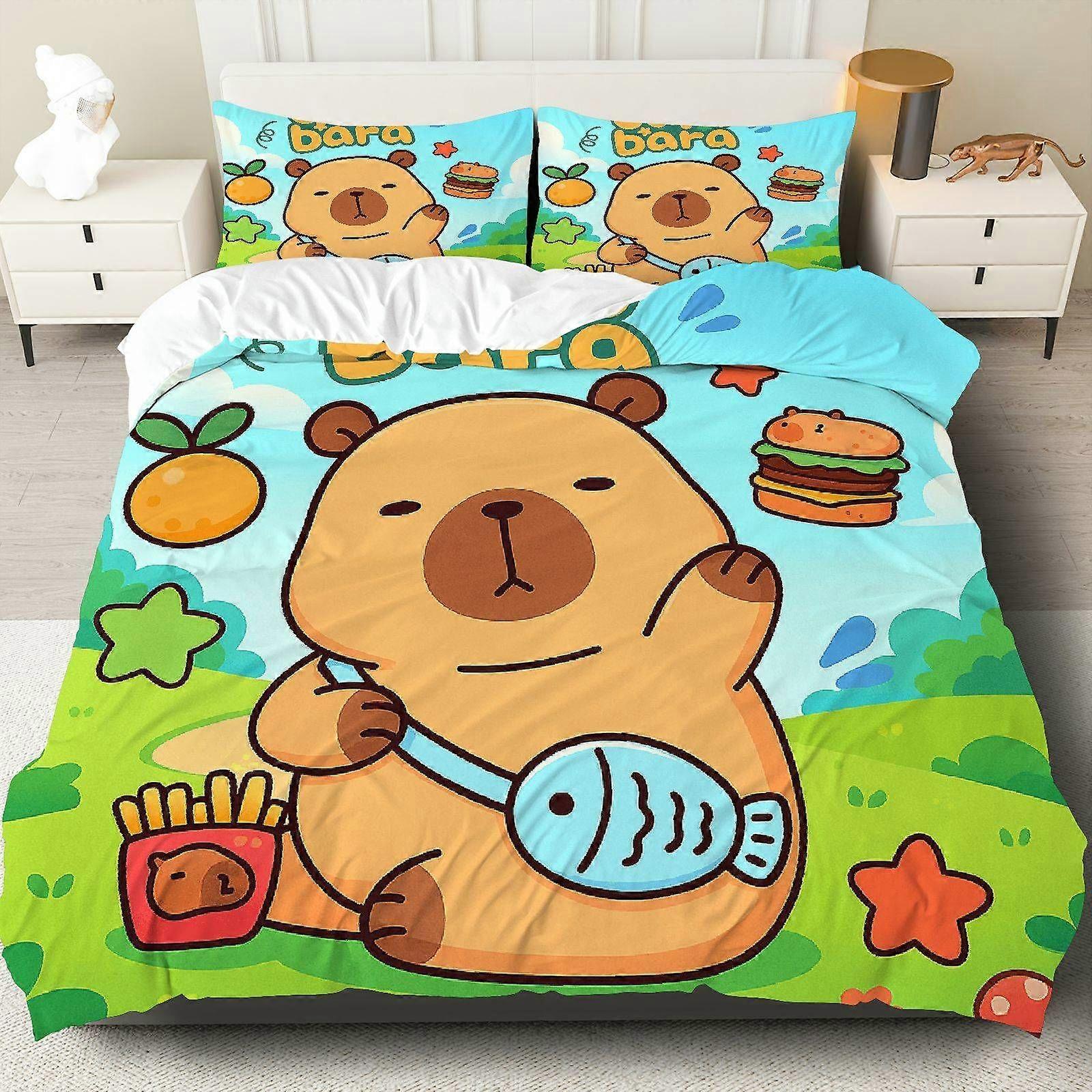 3pcs Bear Food Forest Star Orange Theme Duvet Cover Set - Cute Animal Design Polyester Machine Washable