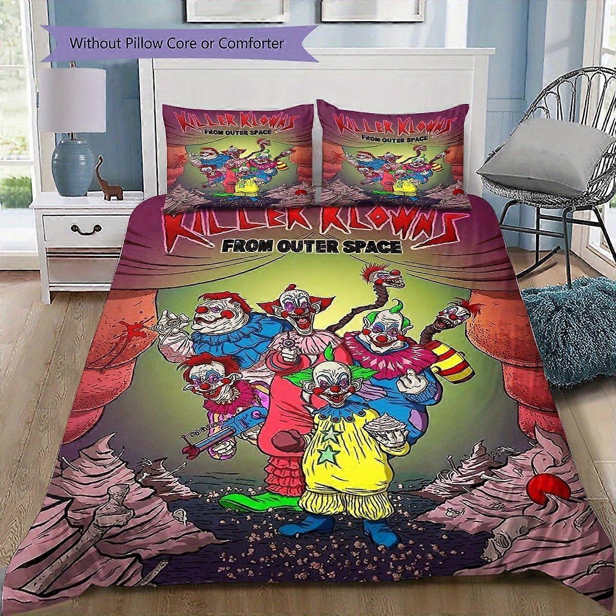 Killer Klowns from Outer Space Digital Print Cartoon Bedding Set - Duvet Cover Pillowcases Home Decor Christmas Gift for Bedroom or Guest Room
