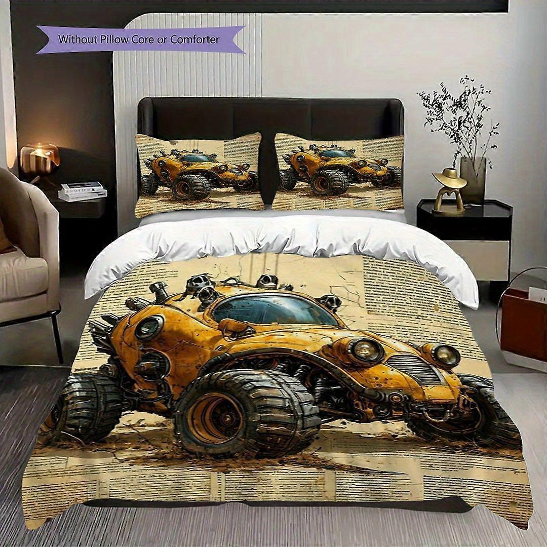 Retro Motorcycle Digital Print Cartoon Bedding Set Duvet Cover Pillowcase Home Decor Christmas Decoration Guest Room