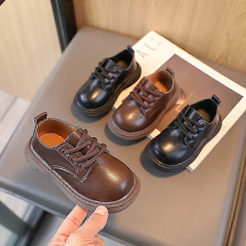 New Children PU Leather Shoes British Style Lace-up Shoe for Performance Party Kids Boy Anti-slip Casual with Soft Bottom Shoes