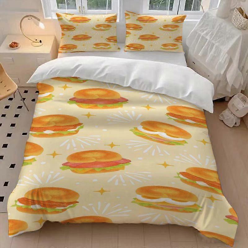 3pcs Burger Pattern Art Duvet Cover Set - Breathable and Comfortable Suitable for All Seasons