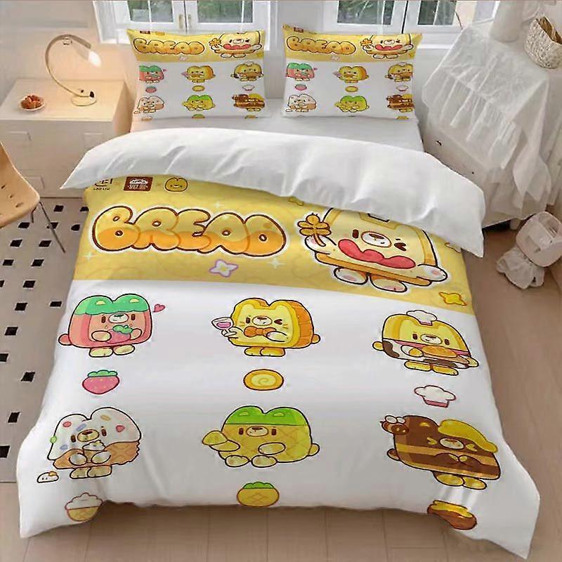 3pcs Bread Bear Cartoon Duvet Cover Set - Soft and Comfortable Suitable for Bedroom and Guest Room