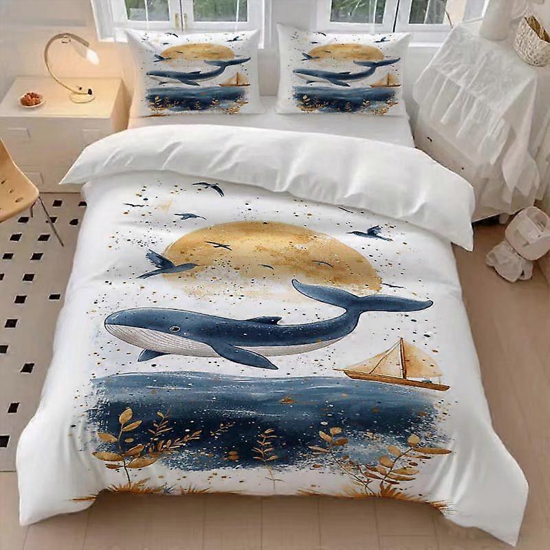 3pcs Whale and Sailboat Duvet Cover Set - Fresh Dormitory Decoration