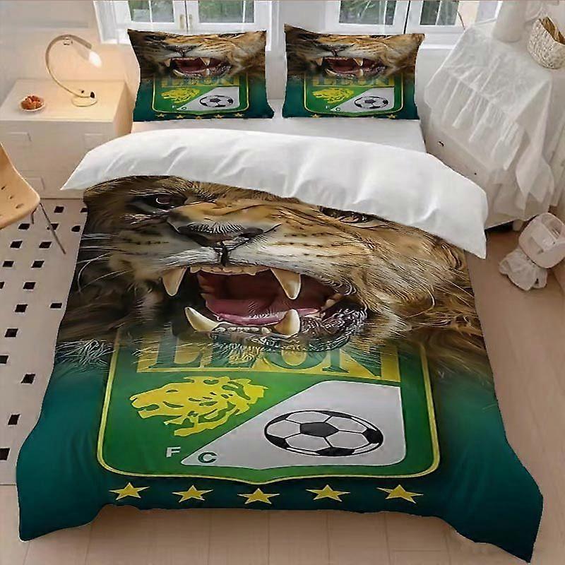 3pcs Lion FC Soccer Badge Duvet Cover Set - Retro Digital Pattern Bedding Set Suitable for All Seasons