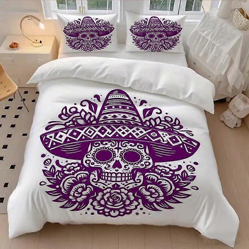 3pcs Purple Sugar Skull Duvet Cover Set - a bedding Perfect for Sports Enthusiasts And Home Decor Ideal for Modern Bedroom Styles