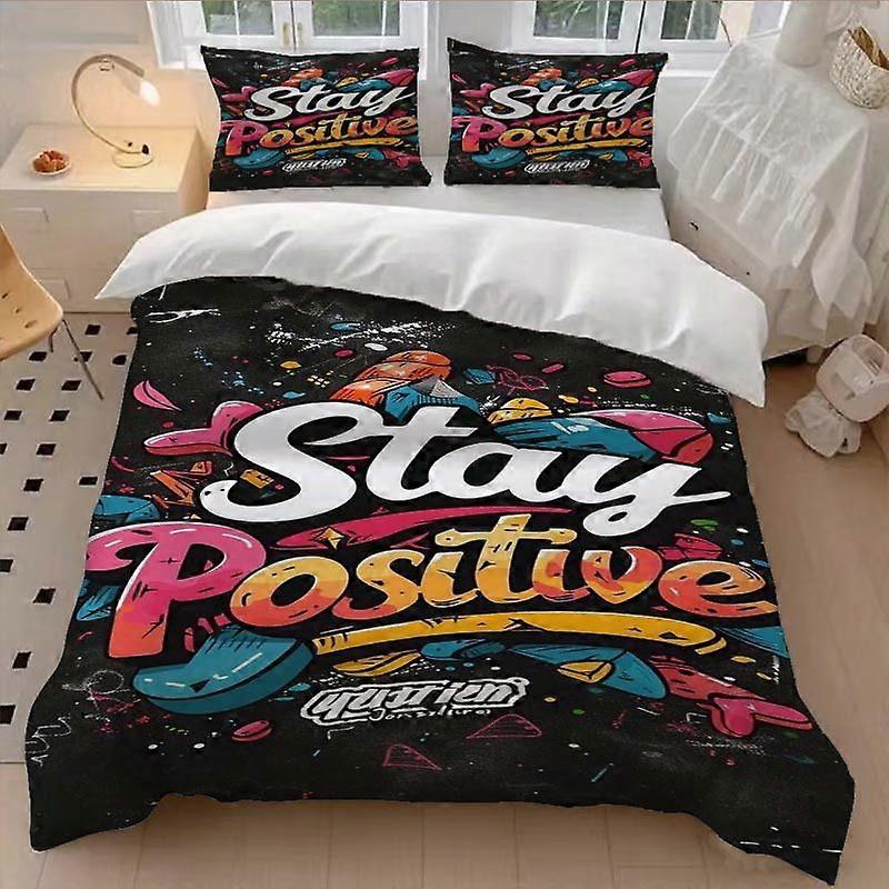 3pcs Stay Positive Art Duvet Cover Set - Perfect for Sports Fans and Home Decor Sports Fan Gear