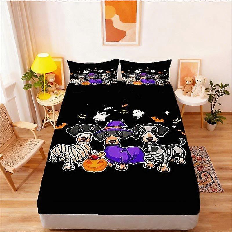 Halloween Dachshund Print Fitted Sheet Bedding Set Breathable and Soft for All Seasons