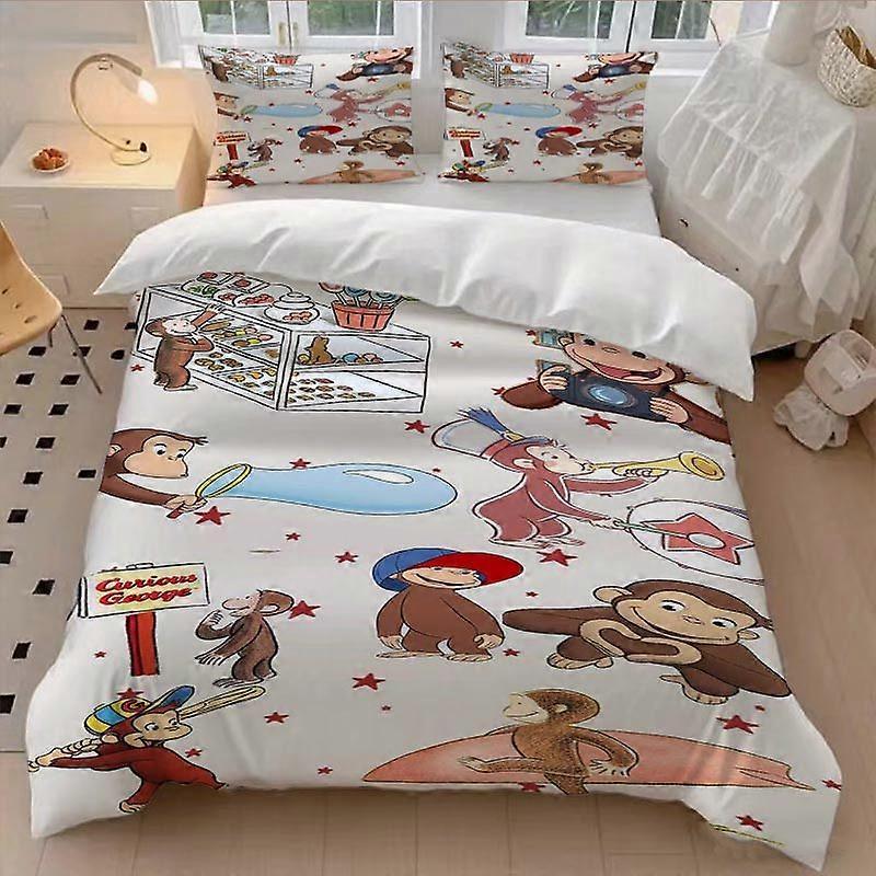 3pcs Curious George Activity Collection Duvet Cover Set - Bedding Set for Guest Room Bedroom Decor Accessories Gift Bedding Set