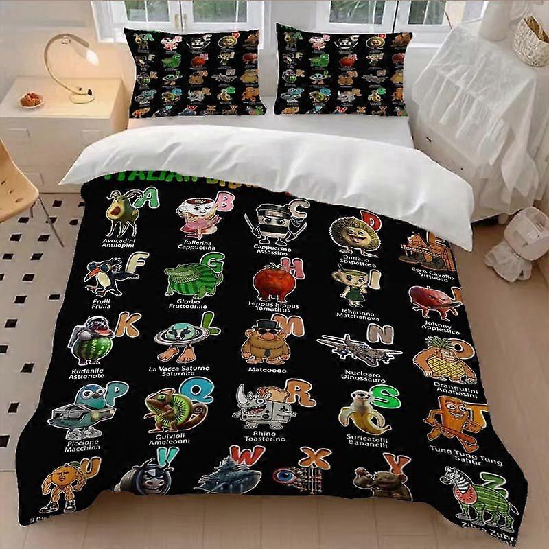 3pcs Italian Brainrot Alphabet Duvet Cover Set - Breathable And Soft Suitable for All Seasons