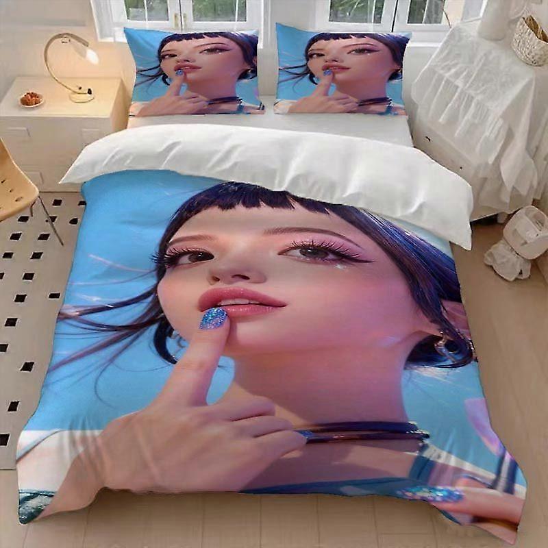 3pcs K-POP Blue Themed Girl Idol Duvet Cover Set Soft Comfortable