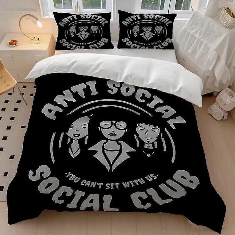 3pcs Anti Social Club Duvet Cover Set - Soft All-Season Bedding Set with Zipper Closure Machine Washable Polyester Fabric for Bedroom Decor