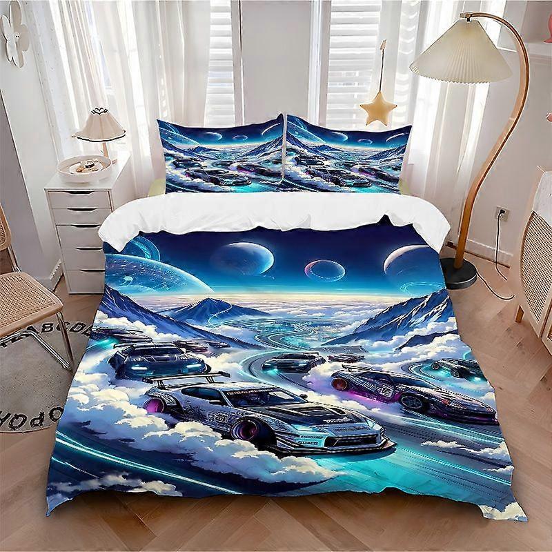 3pcs Cloud-Road-Car-Race Duvet Cover Set 1 Duvet Cover + 1/2 Pillowcases (No Insert)
