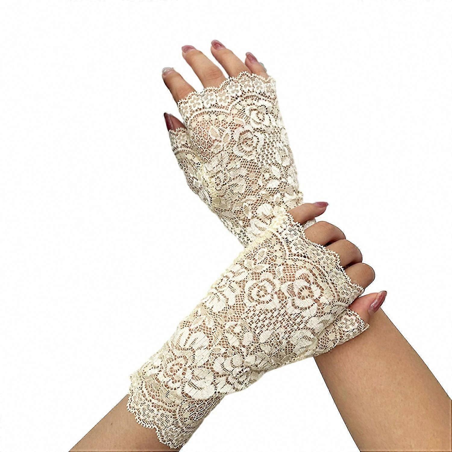 Bridal Gloves Lace Fingerless See-through Hollow Out Flower Embroidery Elastic