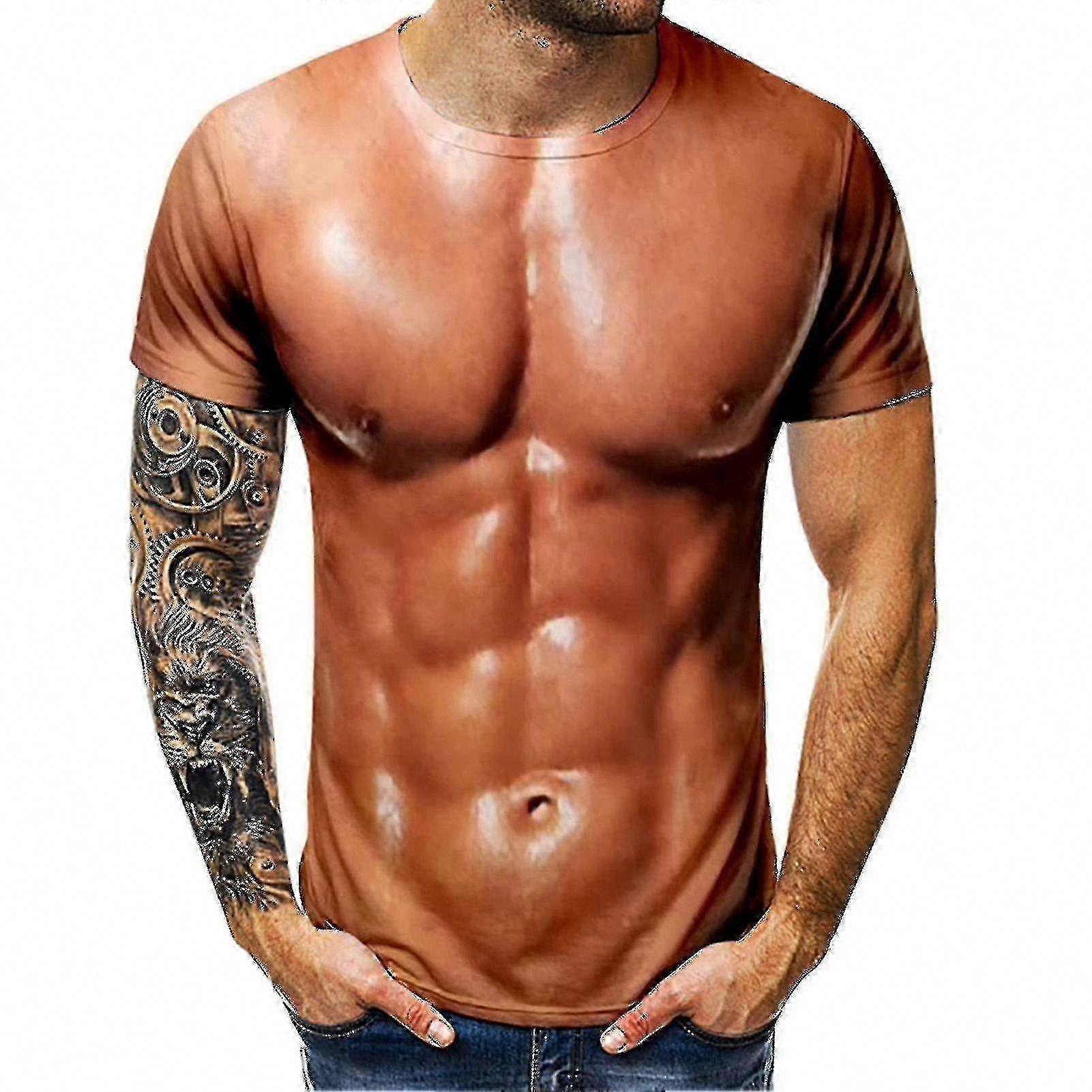 Men's 3D Muscle T-Shirt, Bodybuilding Simulated Chest Tee, Nude Skin Short Sleeve Shirt