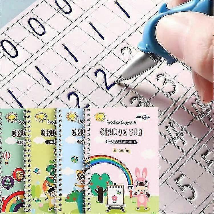 4pcs Grooved Handwriting Practice Book for Kids, Magic Copybook with Auto-Disappear Ink Pen