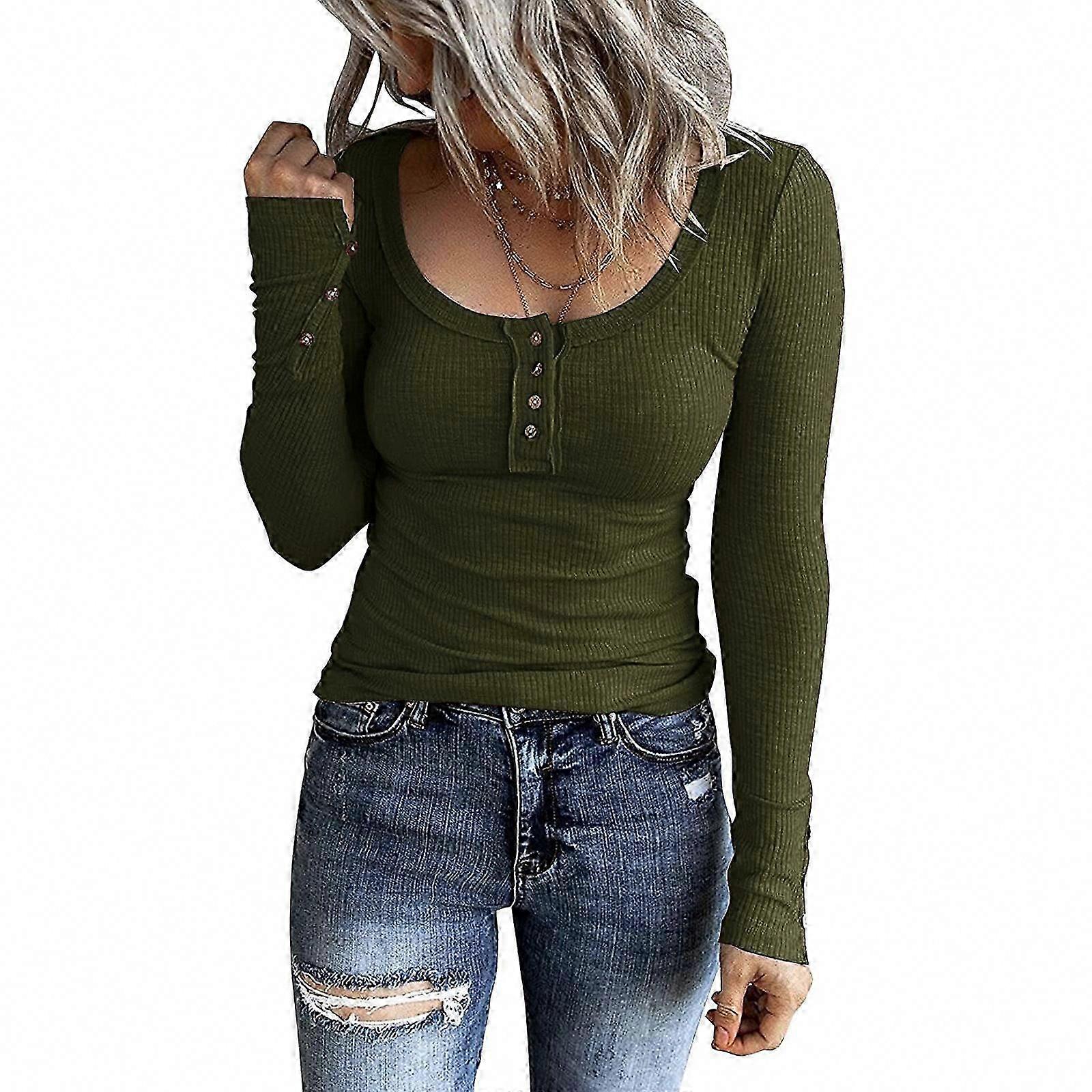 Women's Casual V-Neck Button Tee Long Sleeve Slim Fit T-Shirt Top Blue Gray XXL