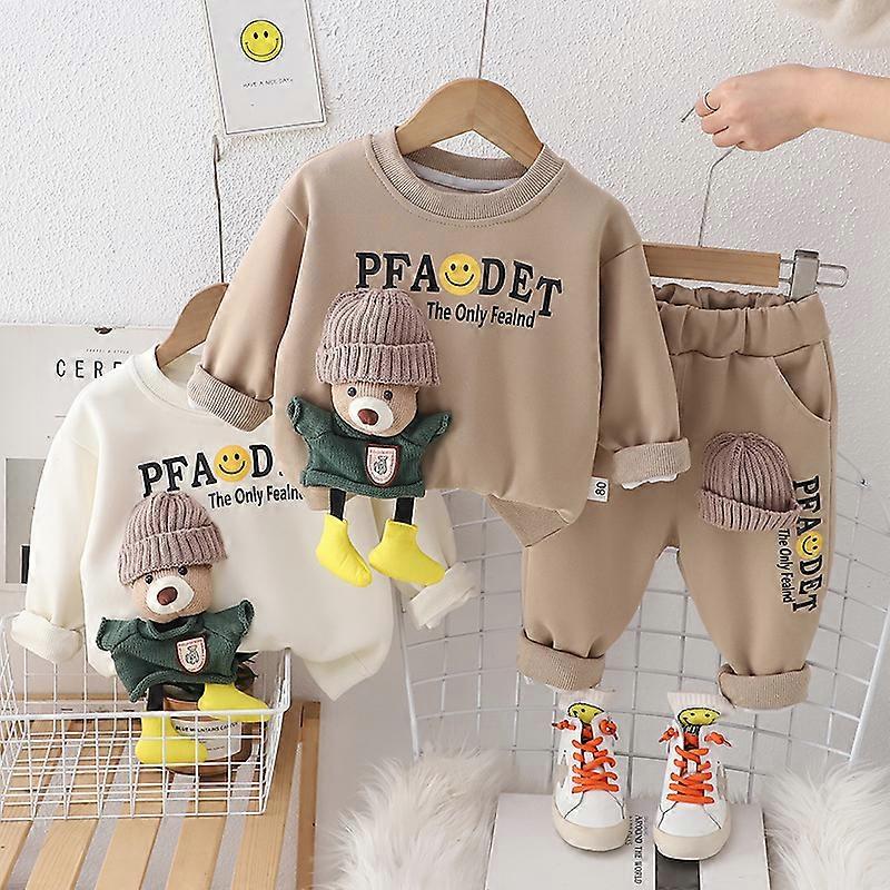 2pcs/set Kids Boy Long-sleeved Clothes Suit Children Sweater Cartoon Sweatshirts Three-dimensional Bear Baby Girl Sports Jacket
