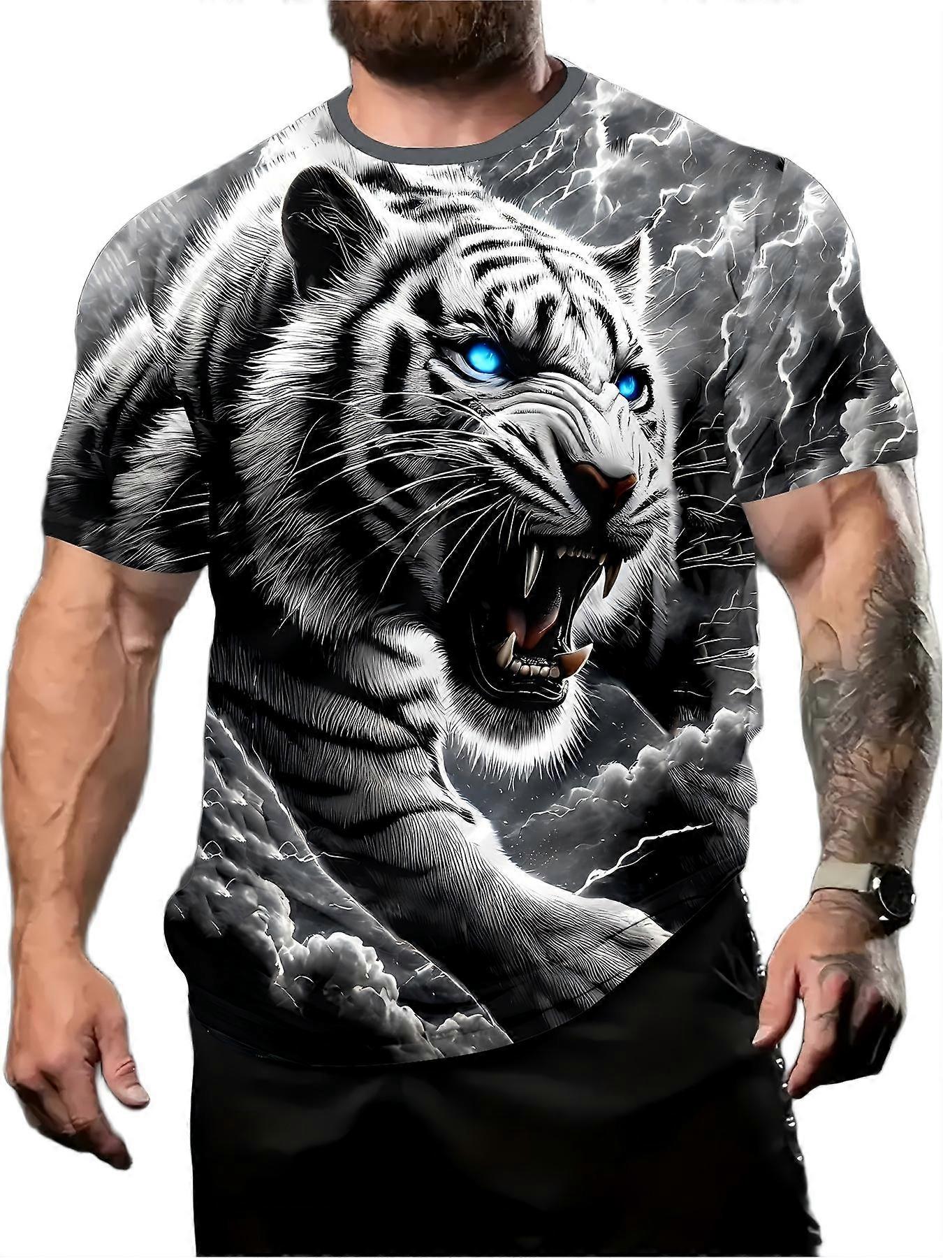 Men's White Tiger With Blue Eyes Graphic T-Shirt Monochrome Art Print Tee Bold Casual Top