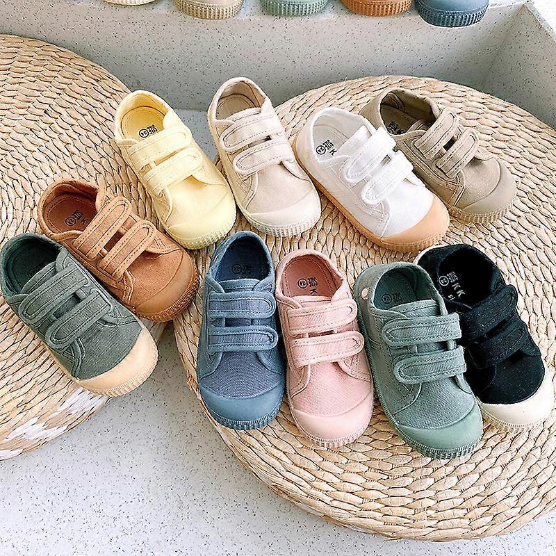 Toddler Kids Retro Canvas Shoes Children Soft Bottom Solid Color Board Shoes Lightweight Breathable Hook and Loop Casual Shoes