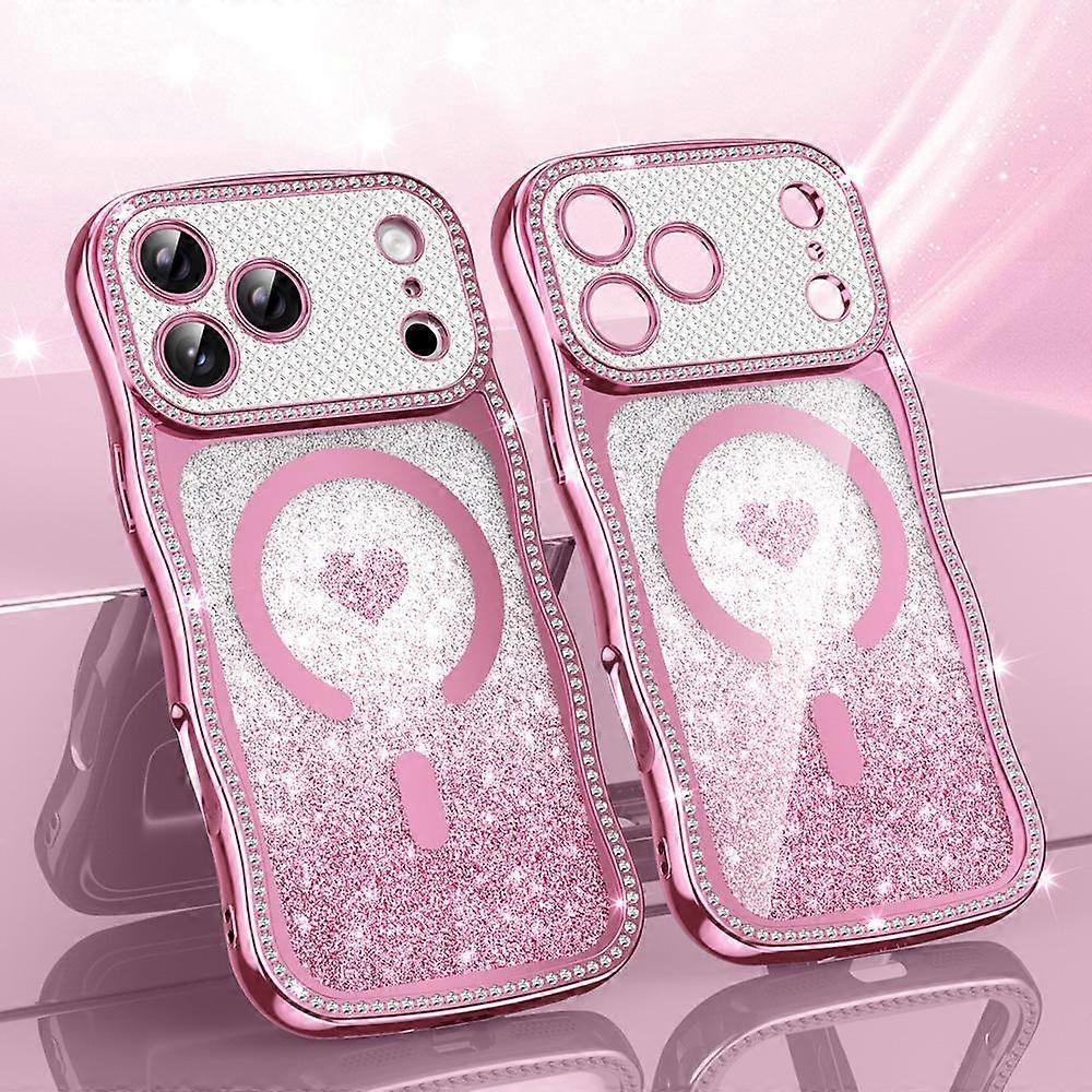 Wavy Frame Star Diamond Electroplate TPU Glitter Heart Magnetic Phone Case