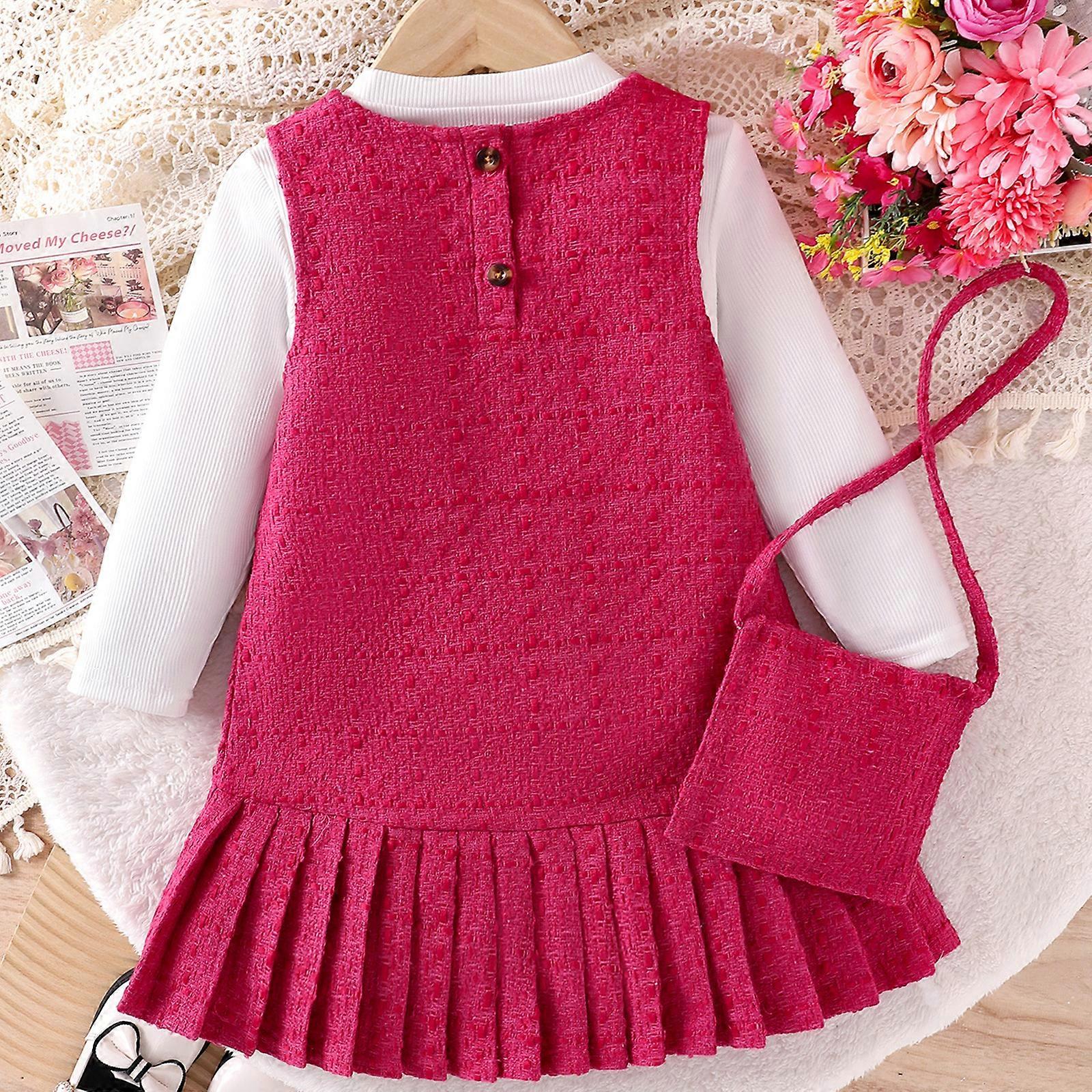Fashionable Pink Dress with Shoulder Bag Girl Dress Festive Dress Trend Girl Suit Pair Dress School Dress Children Kids Girls