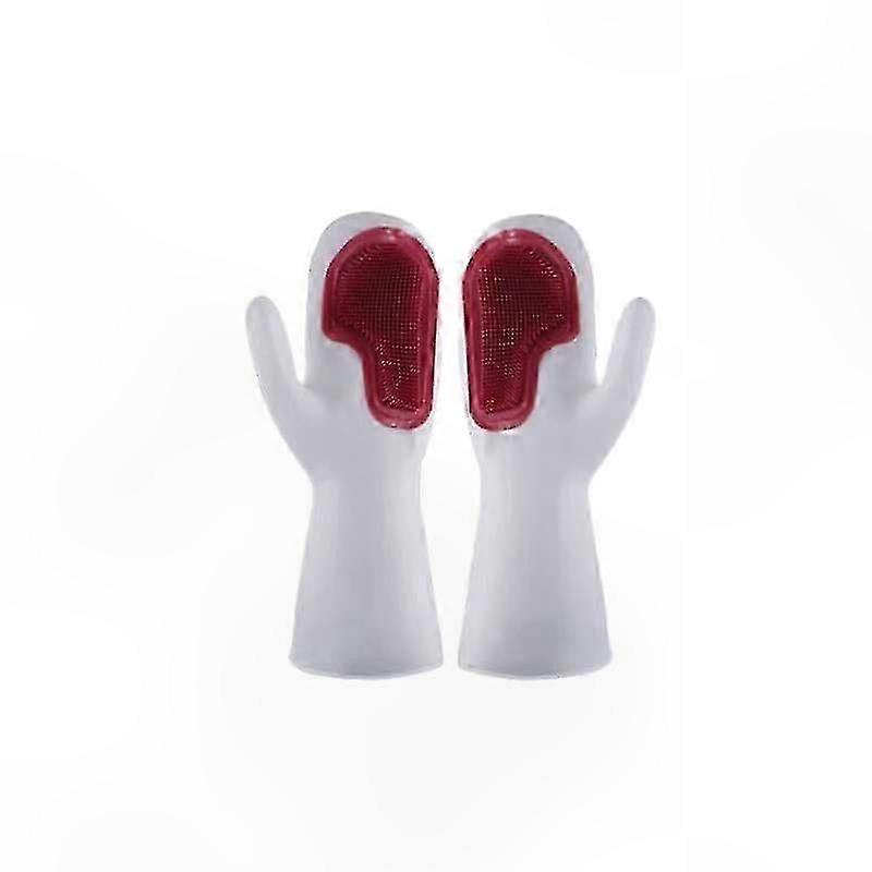 Reusable PVC Kitchen Cleaning Gloves with Brush, Waterproof for Dishwashing, Bathroom, Car - 2 Sets (Red+Purple)