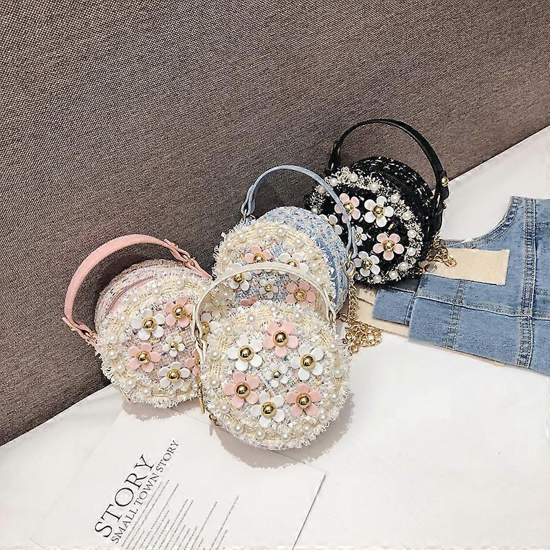 Korean Children Shoulder Bag Versatile Pearl Flower Girls Crossbody Bags Princess Cute Design SchoolBag Baby Coin Purse Handbags