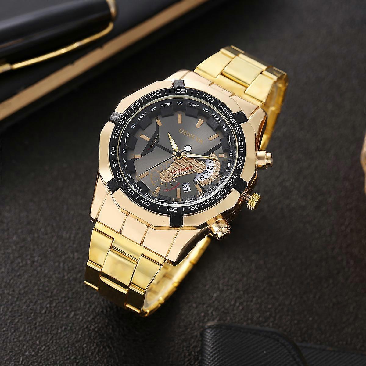 Men's casual quartz watch, gold-colored high-end light luxury men's watch, stainless steel quartz wristwatch