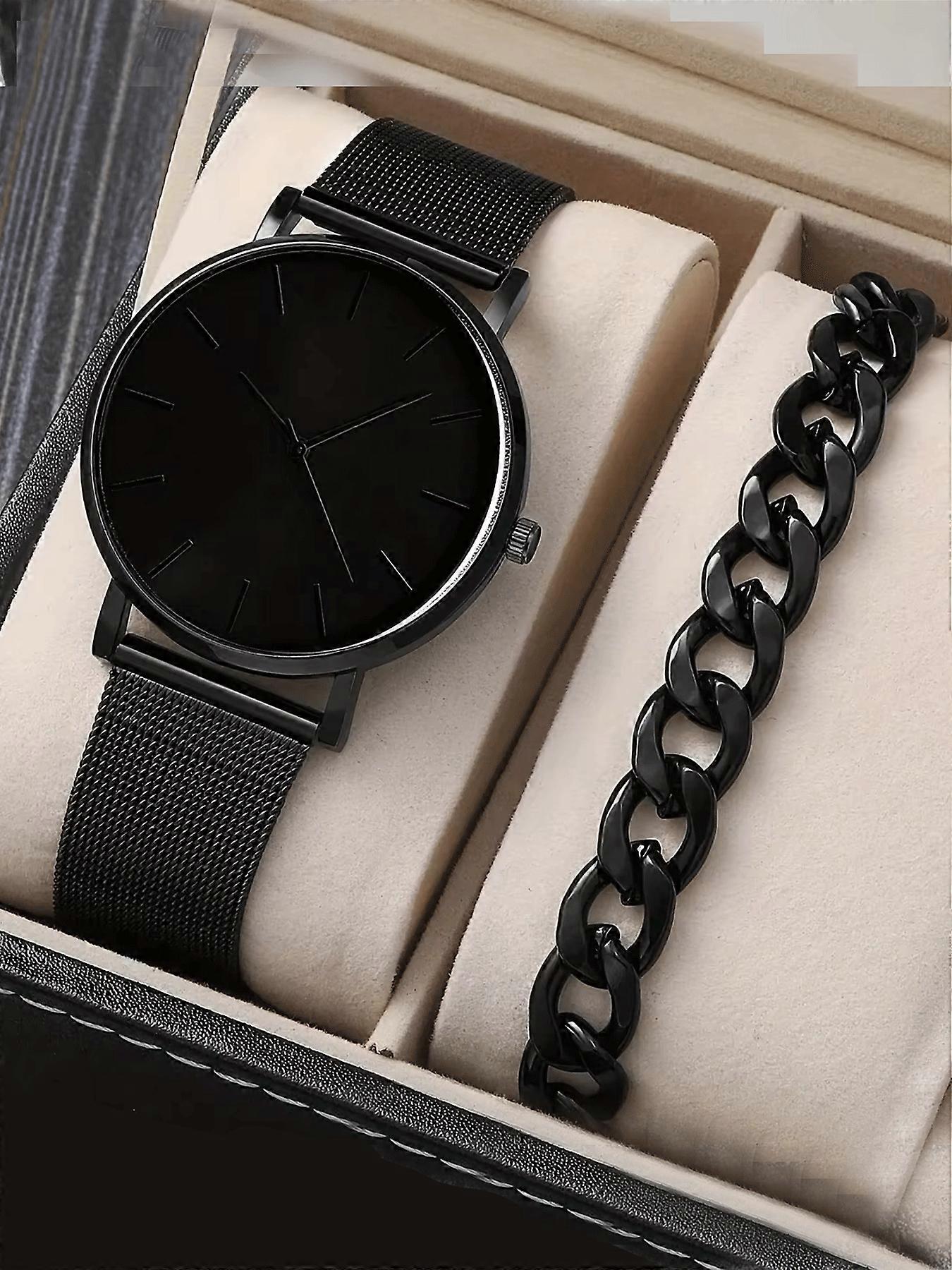 2-piece men's exquisite watch set, men's business high-end quartz men's watch set