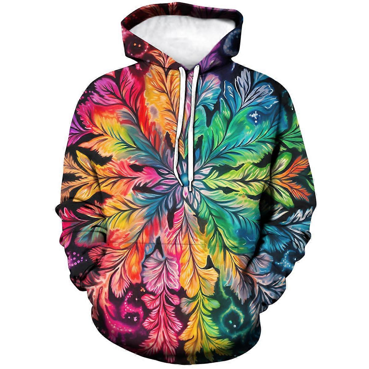 Men's Colorful Floral Mandala Graphic Hoodie Vibrant Art Print Pullover Bold Casual Top