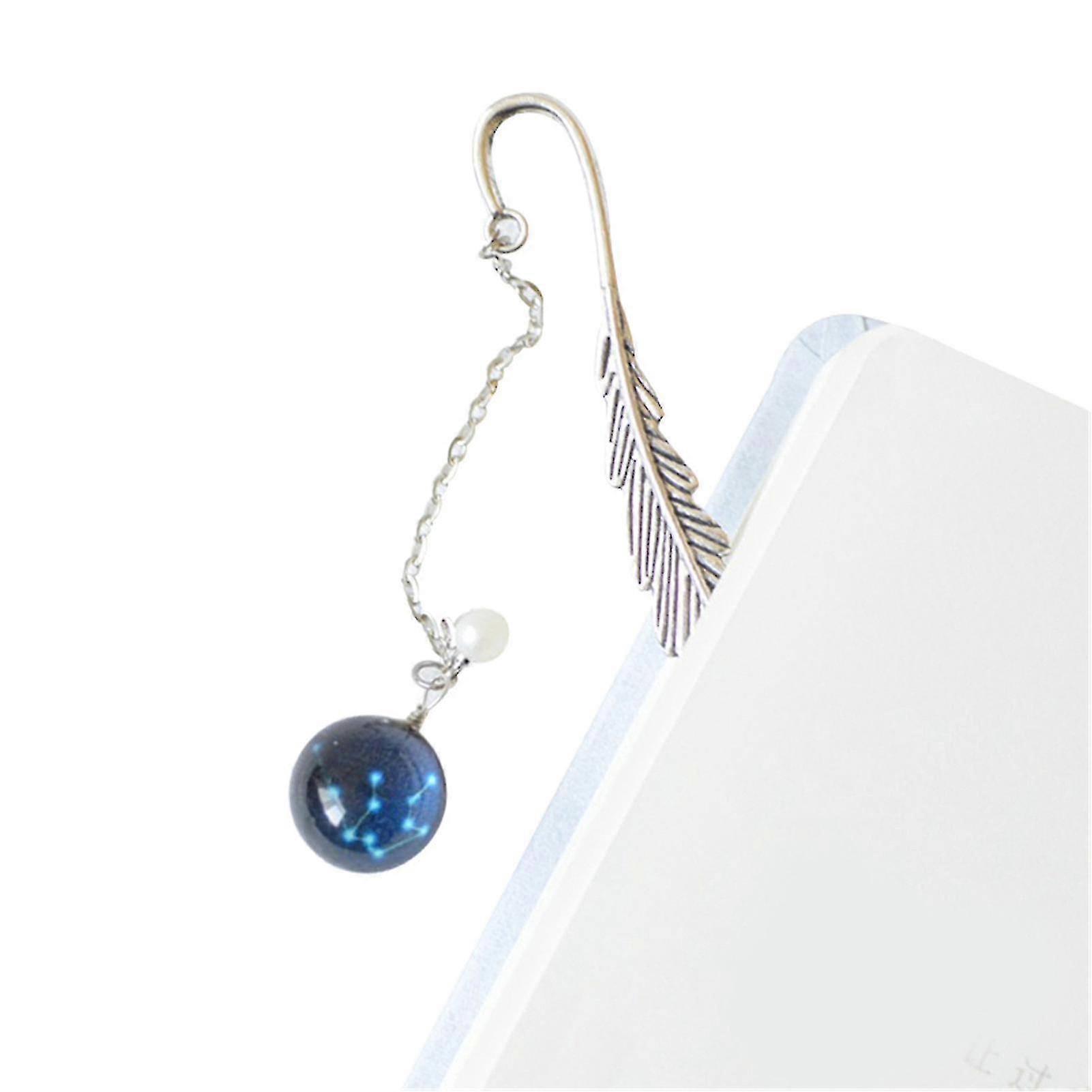 Metal Feather Bookmark, 12 Zodiac Signs Handmade Fluorescent Pendant, Perfect Gift, Aquarius