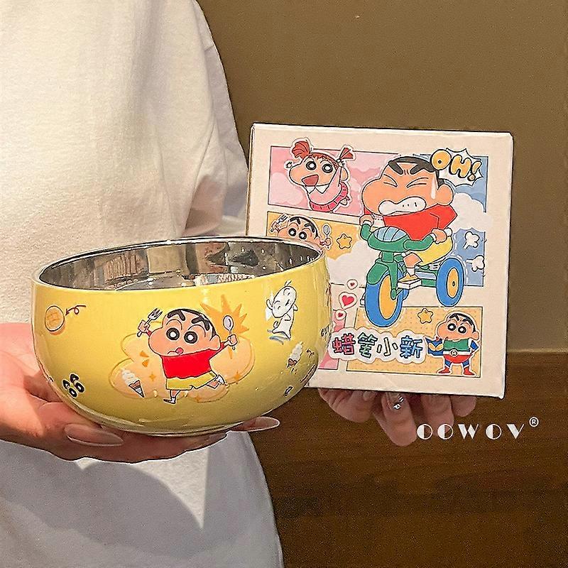 500ML Cartoon Crayon Shin chans Large capacity 316 stainless steel instant noodles bowl Kawaii home restaurant soup bowl