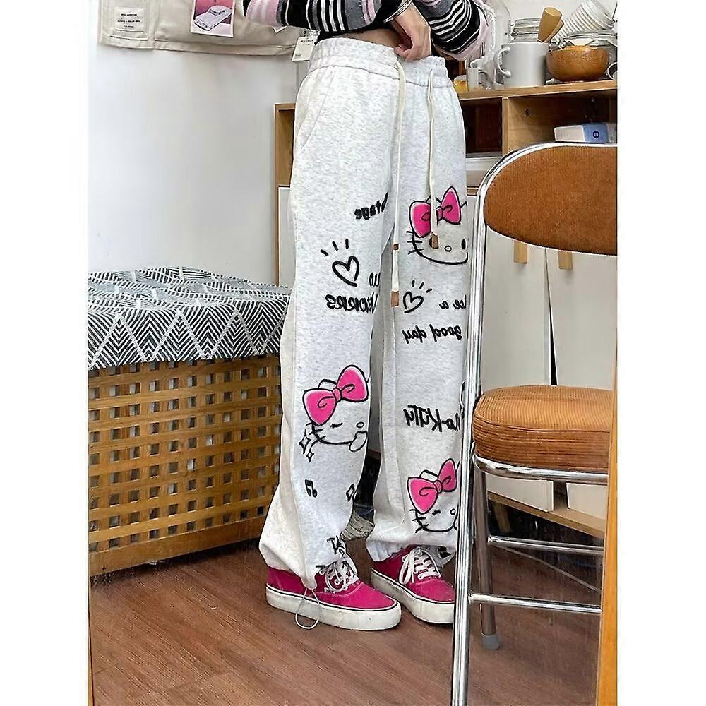 Y2K Hello Kitty Y2K Casual Graffiti Straight-Tie Harem Pants Kawaii Loose Comfort Large Size High Waist Sport Pants Girls Gift