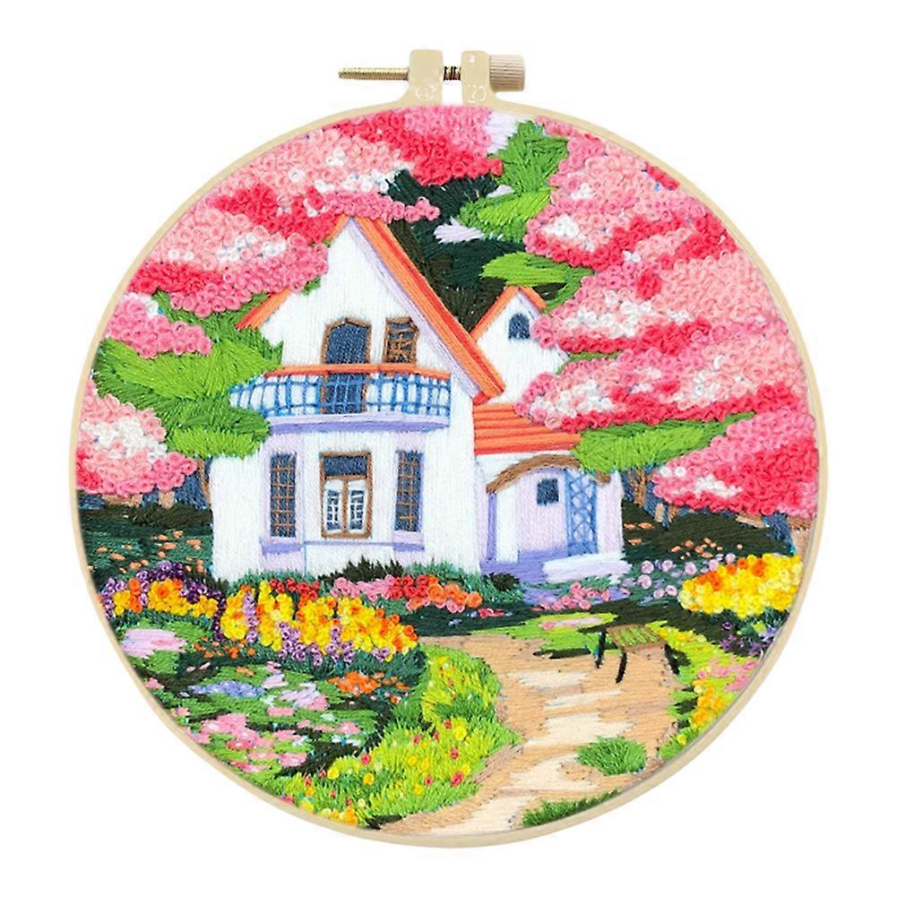 Landscape Stamped Cross Stitch Embroidery Kits with Hoop Cloth Color Thread