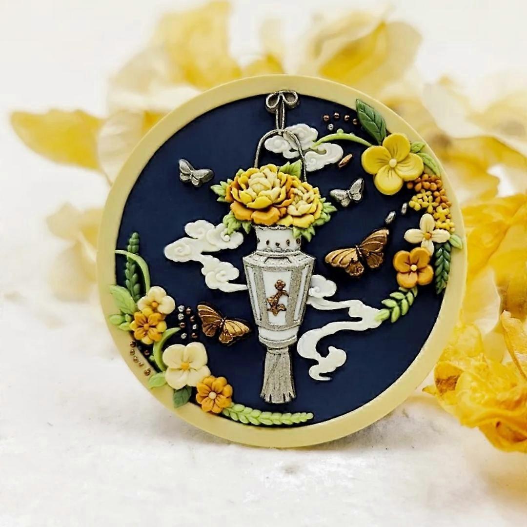Fire Lacquer Sealapple Shaped Multi-Layer Precision Carved Butterfly 3d Relief Palace Lamp Rose Jellyfish Copper Head Stamp Toy