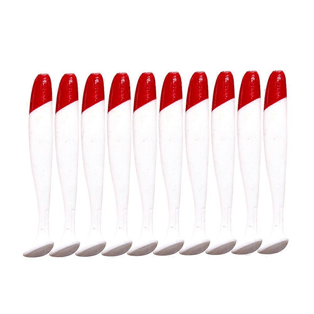 10Pcs Simulation Paddle Tail Bait 5.5/6.3/7cm Artificial Worm Swimbait PVC Red Head White Body T Tail Bait for Bass Trout