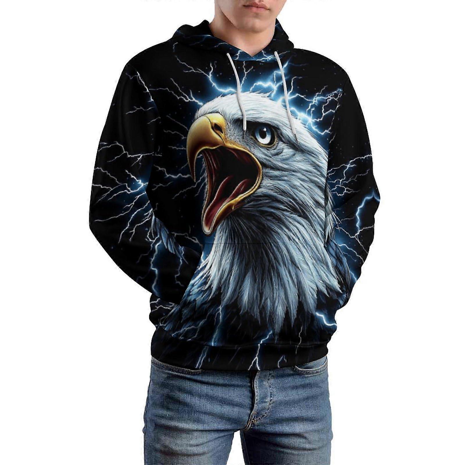 Men's Eagle With Lightning Graphic Hoodie Bold Art Print Pullover Statement Casual Top
