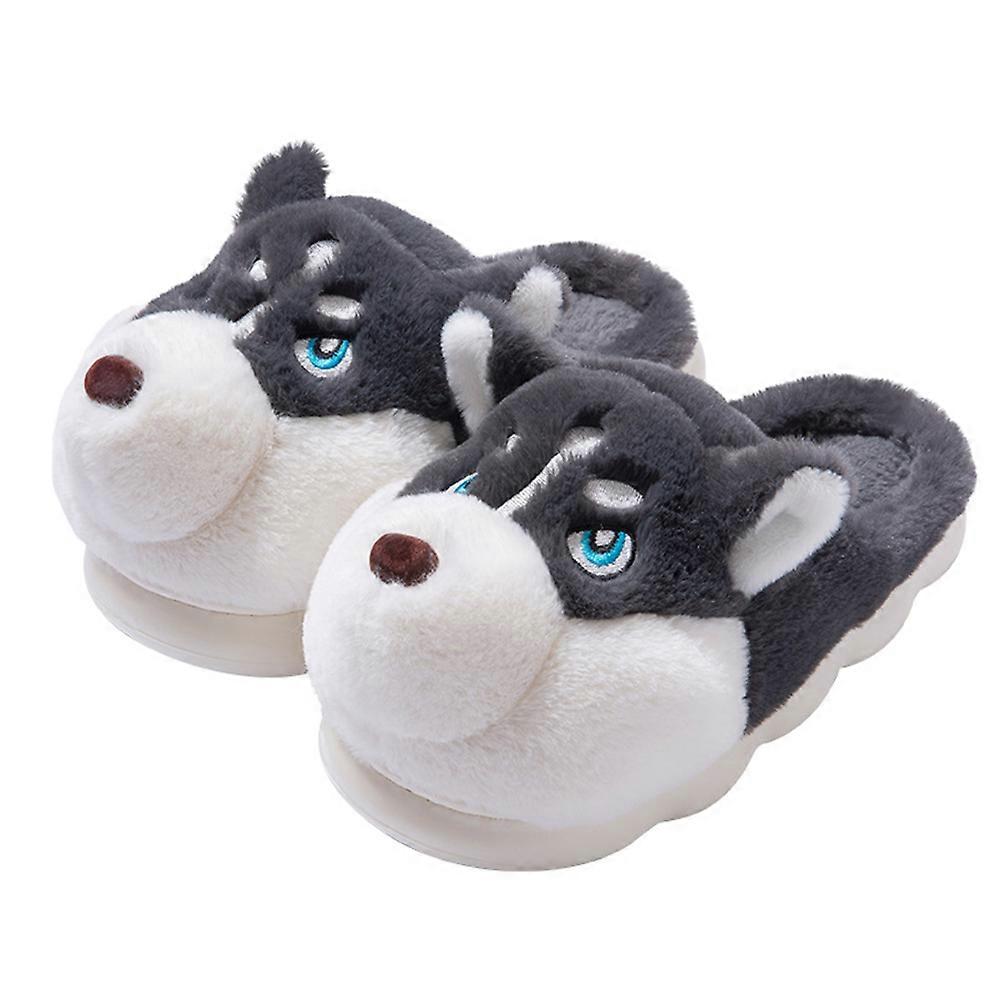 Plush Husky Slippers Winter Flat Thermal Dog Slippers Anti Slip Soft Furry Slippers Comfortable Fluffy Cute Couples House Shoes
