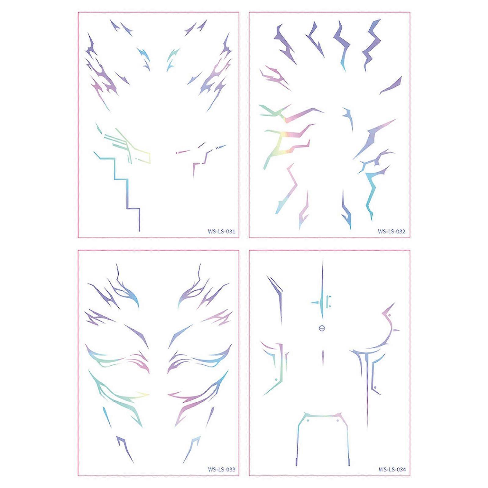 4-Sheet Anime Face Tattoo Sticker Waterproof Face Temporary Tattoo Cosplay Tattoos Stickers Prop Cosplay Party Costume Accessory
