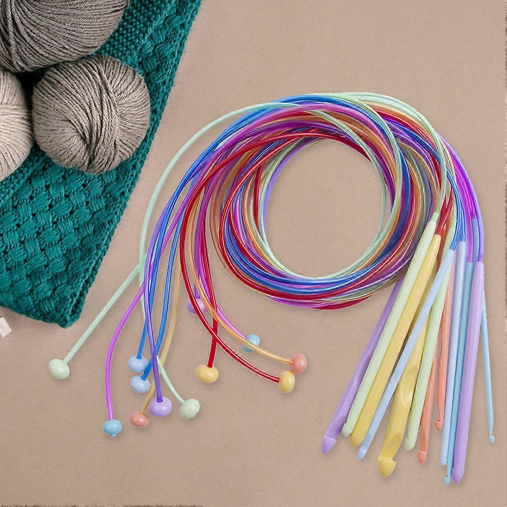 12Pcs Knitting Needles Tool Colorful Afghan Tunisian Weave Knitting Needle Flexible with Cable Kit Sewing Handmade DIY Tools Kit